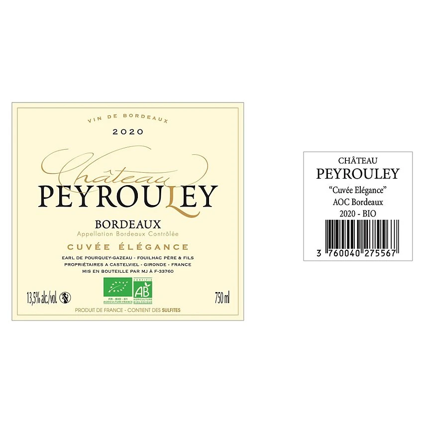 Le moins cher 😀 Château Peyrouley Cuvée Elégance BIO, 2020 – Bordeaux AOC – Rouge – 75 cl ❤️