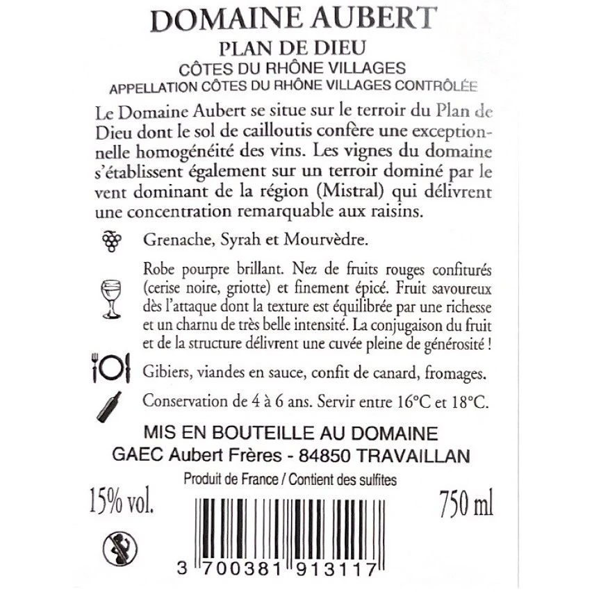 Sortie 🌟 Domaine Aubert, 2020 – Côtes du Rhône Villages Plan de Dieu AOP – Rouge – 75 cl ✔️