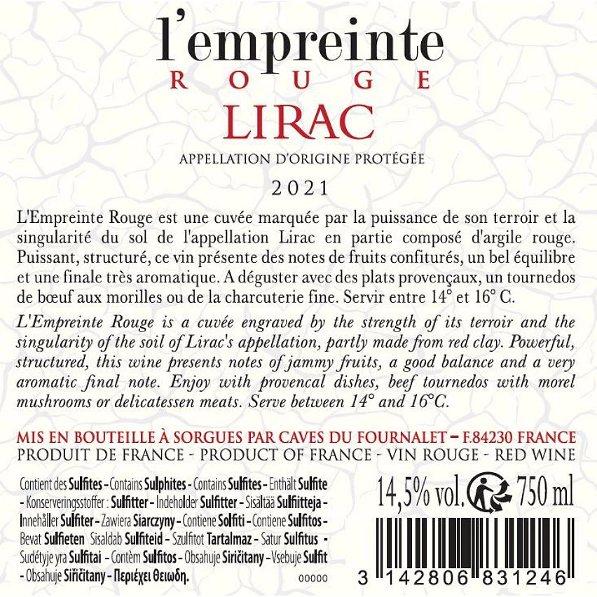 Le moins cher 🥰 Empreinte, 2021 – Lirac AOP – Rouge – 75 cl 👍