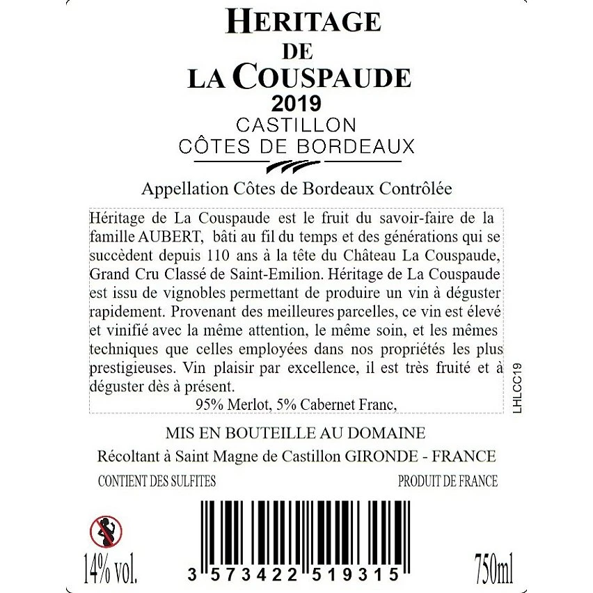 Le moins cher 😍 Héritage de la Couspaude, 2019 – Castillon Côtes de Bordeaux AOP – Rouge – 75 cl 🧨