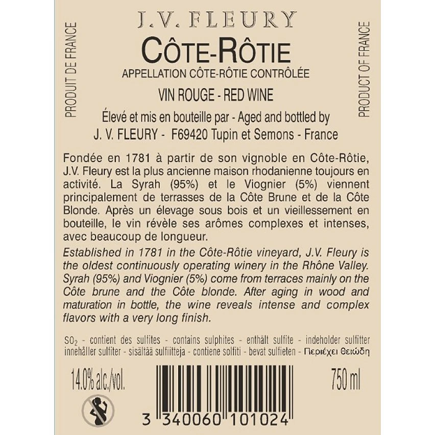Nouveau 🧨 J. V. Fleury, 2019 – Côte-Rotie AOP – Rouge – 75 cl 🎁